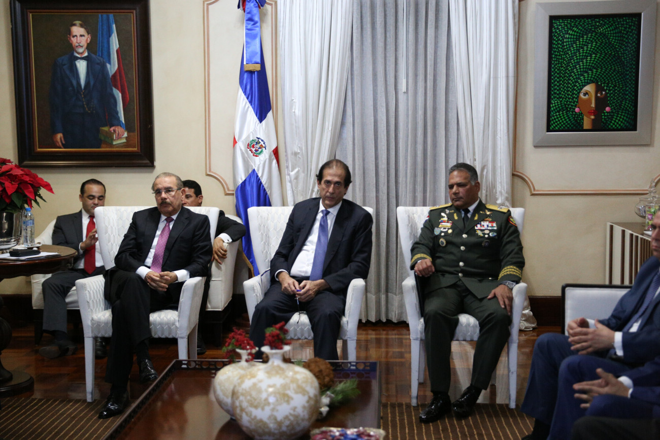 Presidente Danilo Medina, ministro de la Presidencia Gustavo Montalvo, y ministro de Defensa, teniente general Rubén Darío Paulino Sem.