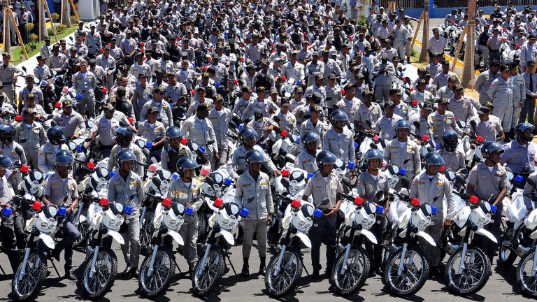 Las nuevas motocicletas se suman a las 300 camionetas que también entregó anteriormente el Gobierno. El acto fue celebrado en la explanada frontal del Palacio de la Policía.
