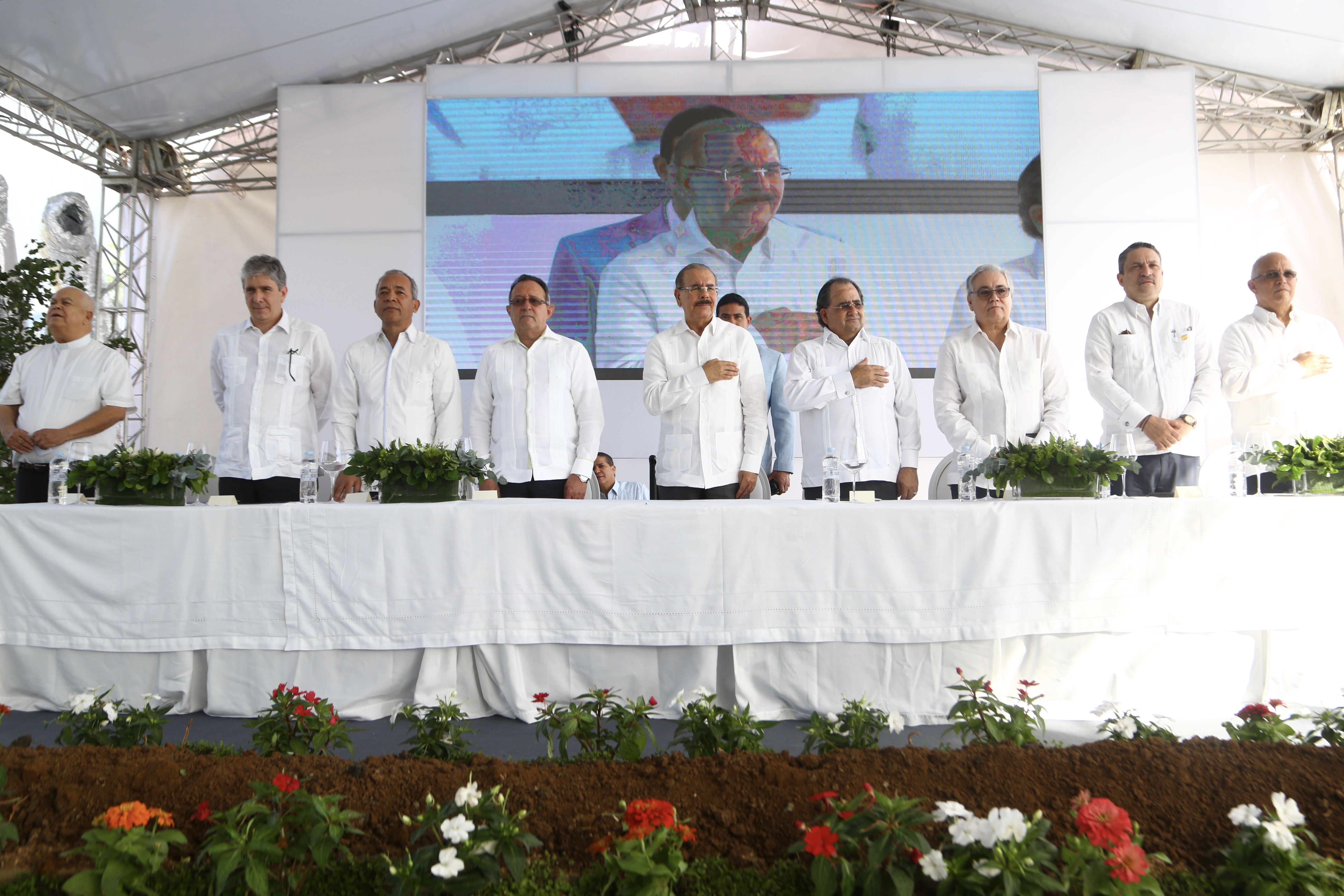 Participación del presidente Danilo Medina y ejecutivos del Grupo Energético 23 (GE23), durante recepción por el inicio de operaciones del Parque Eólico Los Guzmancito. Simultáneamente, Medina dejó iniciada la segunda etapa del proyecto, ubicado en el municipio Luperón, en Puerto Planta.