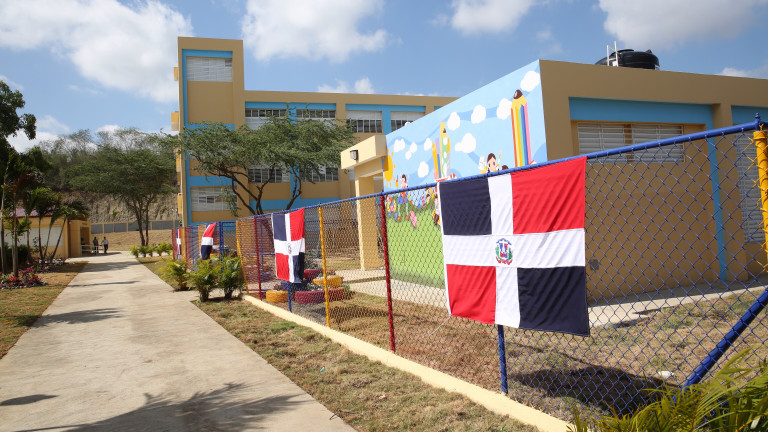 Vista del área interior de una de las escuelas puesta en funcionamiento durante acto de inauguración en conjunto encabezado por el presidente Danilo Medina, en la comunidad de La Otra Banda, Santiago.