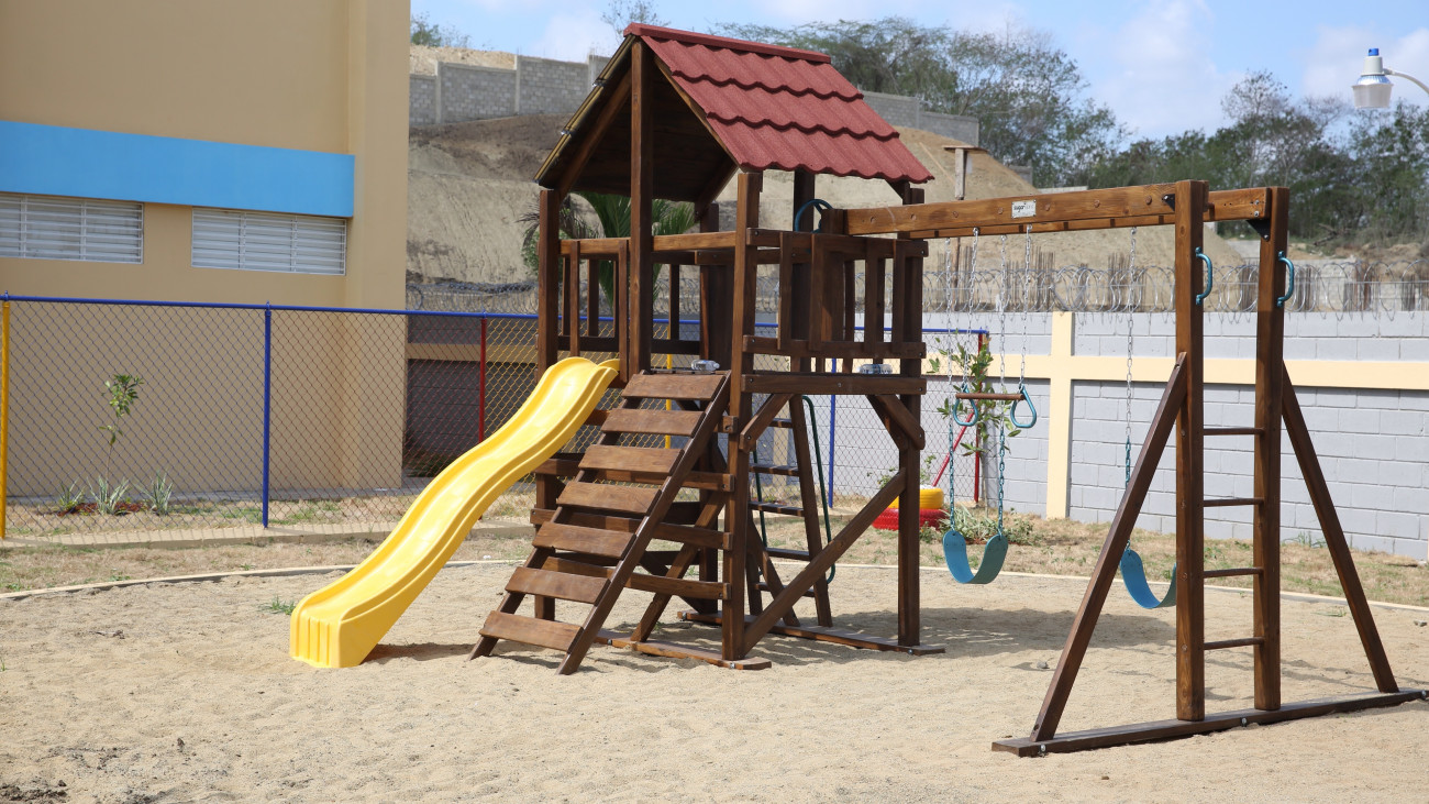 Vista del área de recreación infantil de una de las escuelas puesta en funcionamiento durante acto encabezado por el presidente Danilo Medina, en la comunidad de La Otra Banda, Santiago.