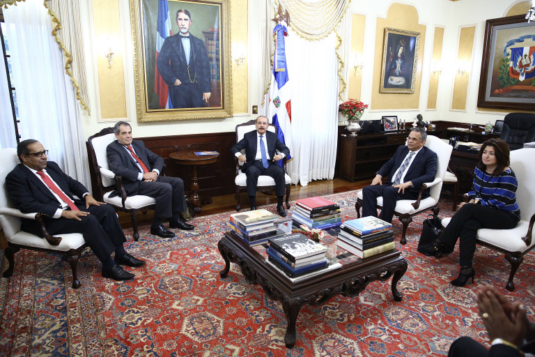 El presidente Danilo Medina junto al ministro de Administración Pública, Ramón Ventura Camejo y delegación de expertos de la OCDE, durante su visita de cortesía al Palacio Nacional. Foto: Romelio Montero/Presidencia República Dominicana Enlace noticia: presidencia.gob.do/noticias/presidente-danilo-medina-reci...