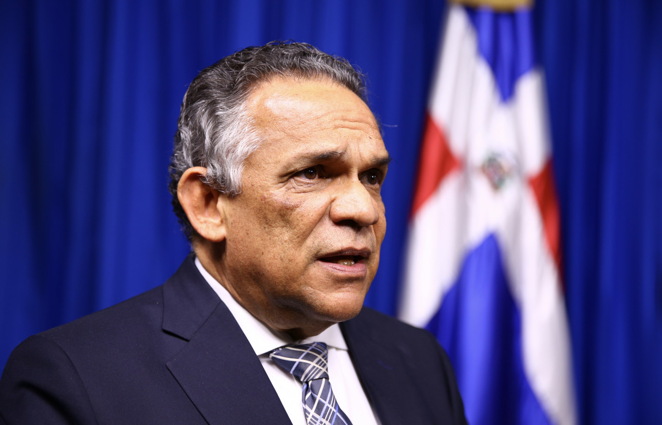 Ministro de Administración Pública, Ramón Ventura Camejo, durante rueda de prensa en el Salón Orlando Martínez, del Palacio Nacional.