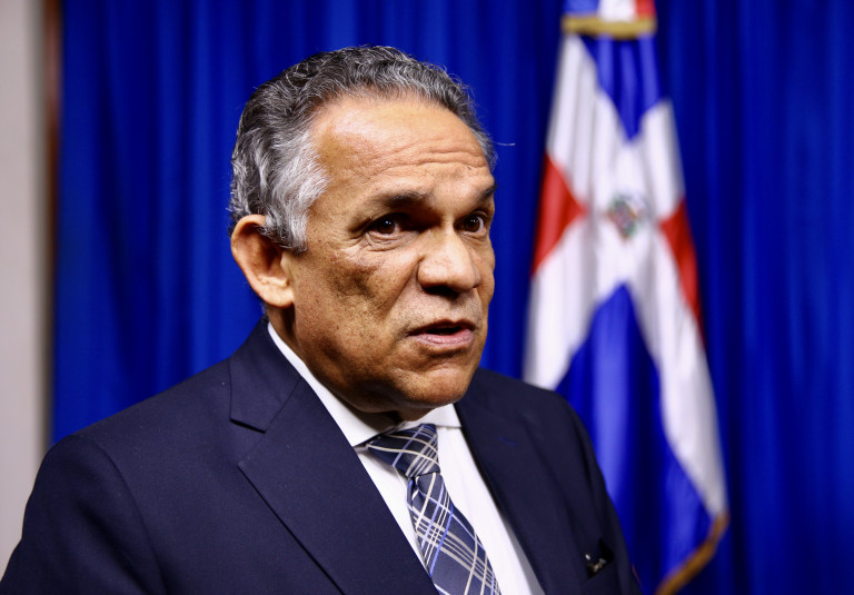 Ministro de Administración Pública, Ramón Ventura Camejo, durante rueda de prensa en el Salón Orlando Martínez, del Palacio Nacional.