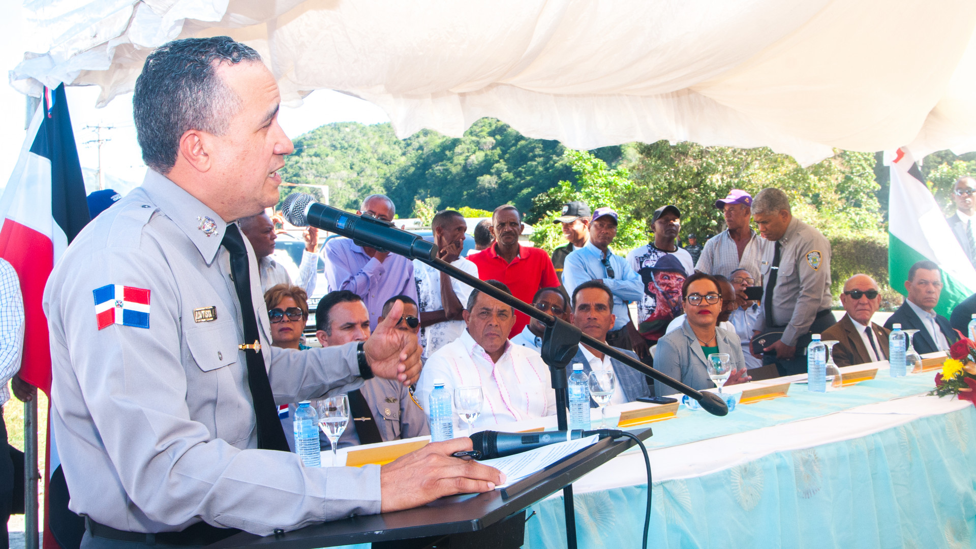 Gente de El Carrizal, Azua, reciben moderno destacamento policial prometido por Danilo Medina en Visita Sorpresa