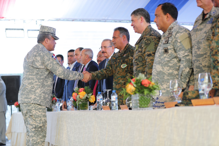Durante el acto, el presidente de la República estuvo acompañado de los altos mandos militares, tales como los comandantes generales del Ejército de República Dominicana, mayor general Estanislao Gonell Regalado; de la Armada de República Dominicana, vicealmirante Emilio Recio Segura; y de la Fuerza Aérea de República Dominicana, mayor general piloto Richard Vázquez Jiménez.