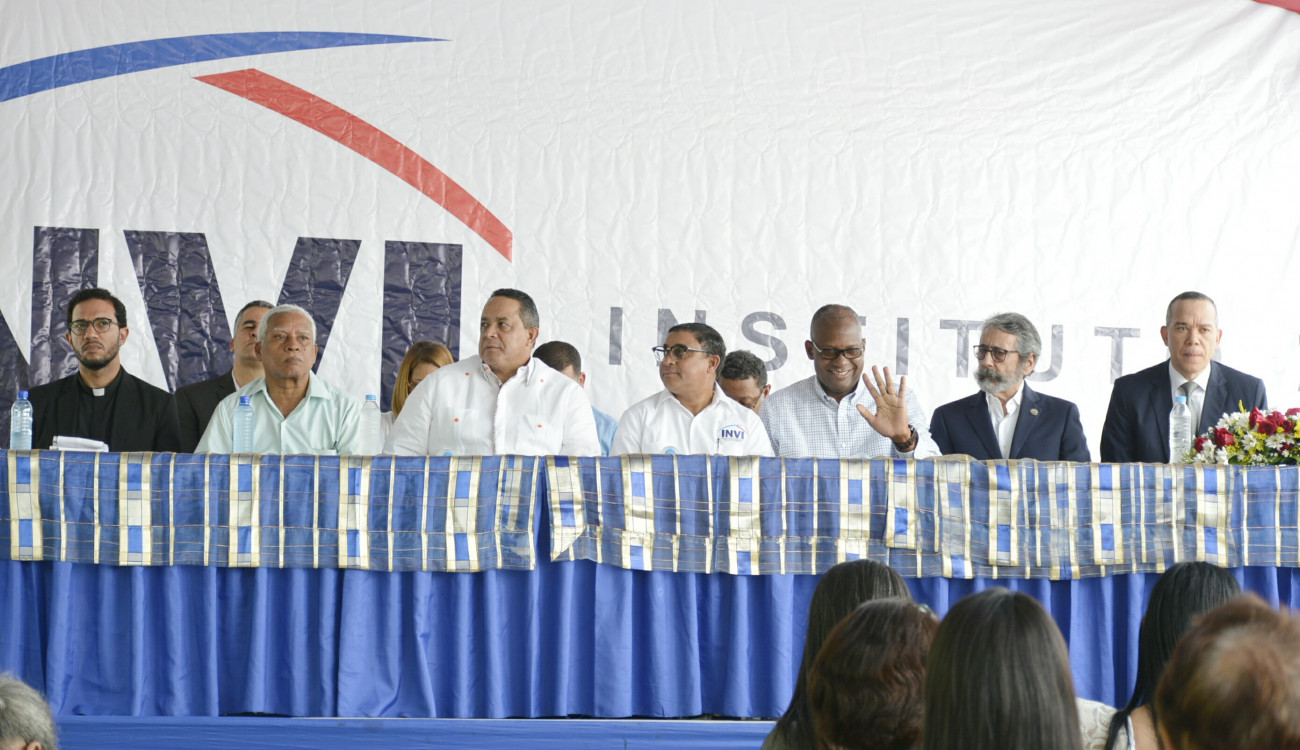 Acto de entrega de títulos definitivos de propiedad de apartamentos y locales comerciales a familias de Santo Domingo Este, encabezado por el director del INVI, Mayobanex Escoto.