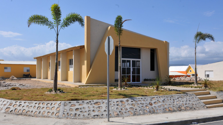 Vista de edificación de la iglesia católica de la comunidad entregada hoy por los contratistas al ministro Peralta, quien se mostró complacido por haberlas recibido en el tiempo acordado.