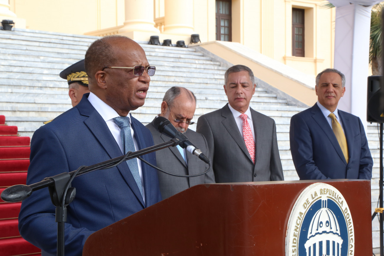 Acto de entrega de 70 autobuses nuevos a la Oficina Metropolitana de Servicios de Autobuses (OMSA), encabezado por el ministro Administrativo de la Presidencia, José Ramón Peralta, en la explanada frontal del Palacio Nacional. Foto: Alejandro Santos/Presidencia República Dominicana Enlace noticia: presidencia.gob.do/noticias/transporte-eficiente-gobierno...