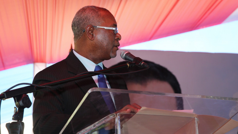 Señor Félix de los Santos, gobernador de San Pedro de Macorís, mientras pronuncia las palabras de bienvenida.