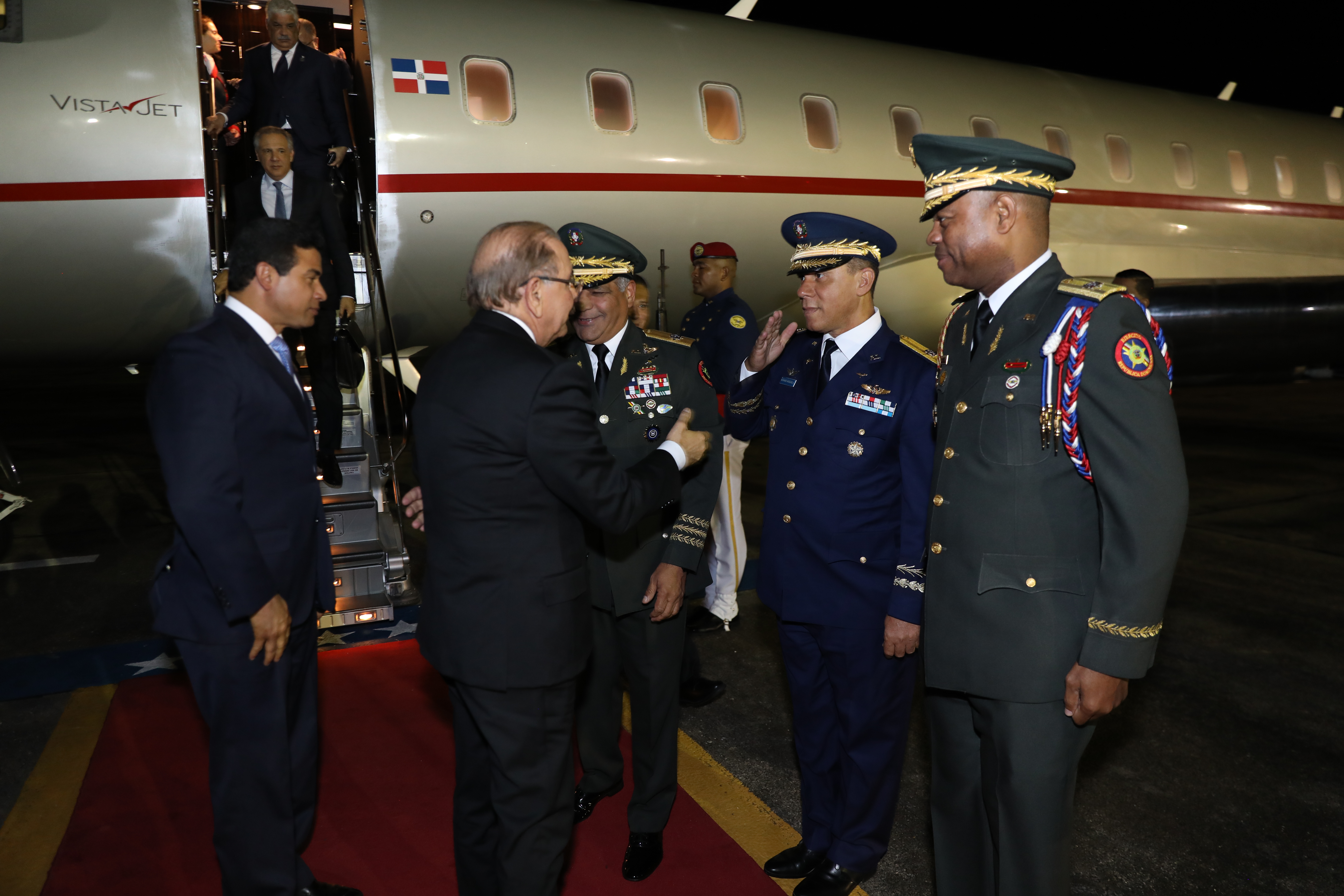 La llegada del jefe de Estado dominicano se produjo a las 11:45 de la noche, por la Base Aérea de San Isidro.