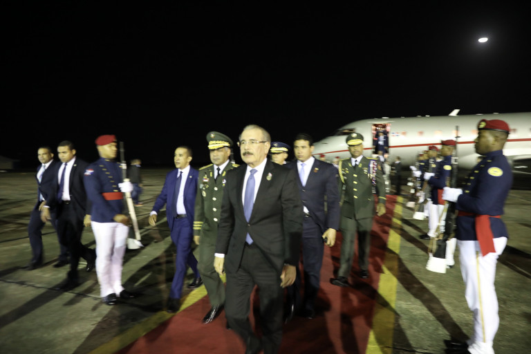 La llegada del jefe de Estado dominicano se produjo a las 11:45 de la noche, por la Base Aérea de San Isidro.