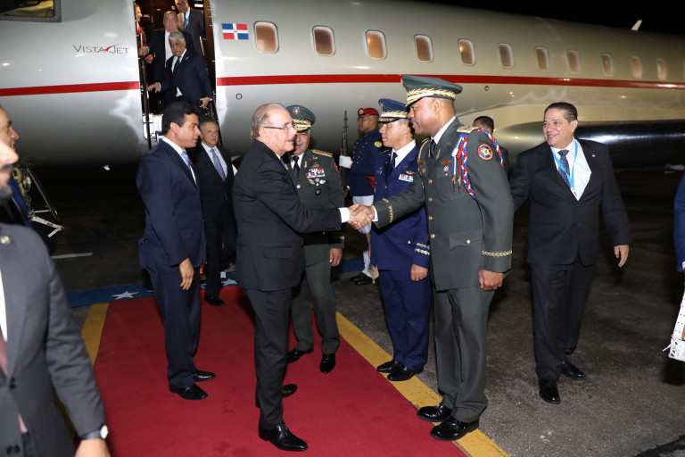 La llegada del jefe de Estado dominicano se produjo a las 11:45 de la noche, por la Base Aérea de San Isidro.