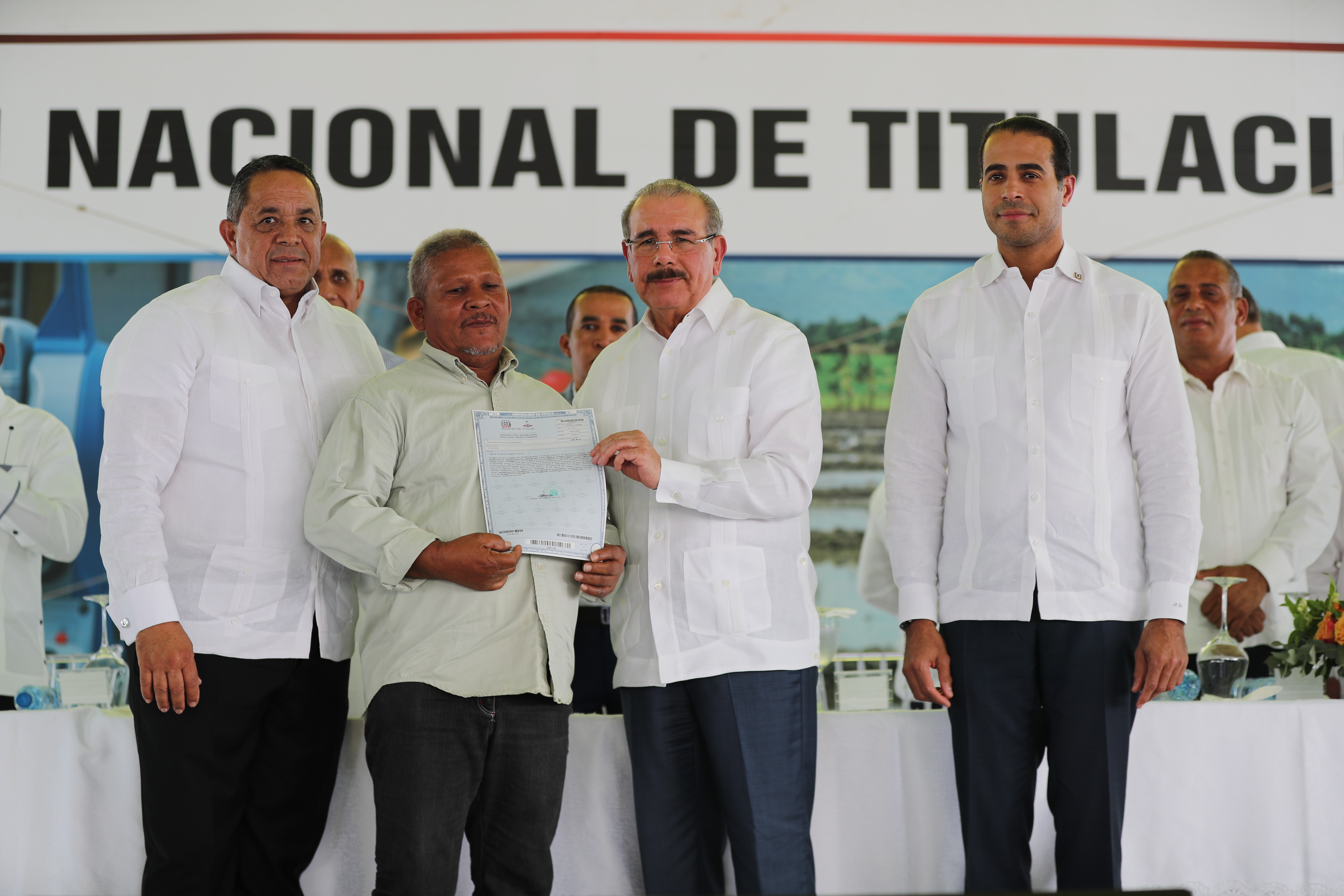 Acto encabezado por el presidente Danilo Medina por entrega de certificados de títulos definitivos de parcelas y solares de viviendas a productores y residentes de Vicente Noble, como parte del Plan Nacional de Titulación que implementa el Gobierno.