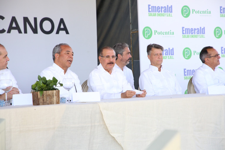 Acto inaugural encabezado por el presidente Danilo Medina con inversionistas y ejecutivos de Potentia Renewables, por el inicio de operaciones del parque Solar Canoa, en Vicente Noble, Barahona.