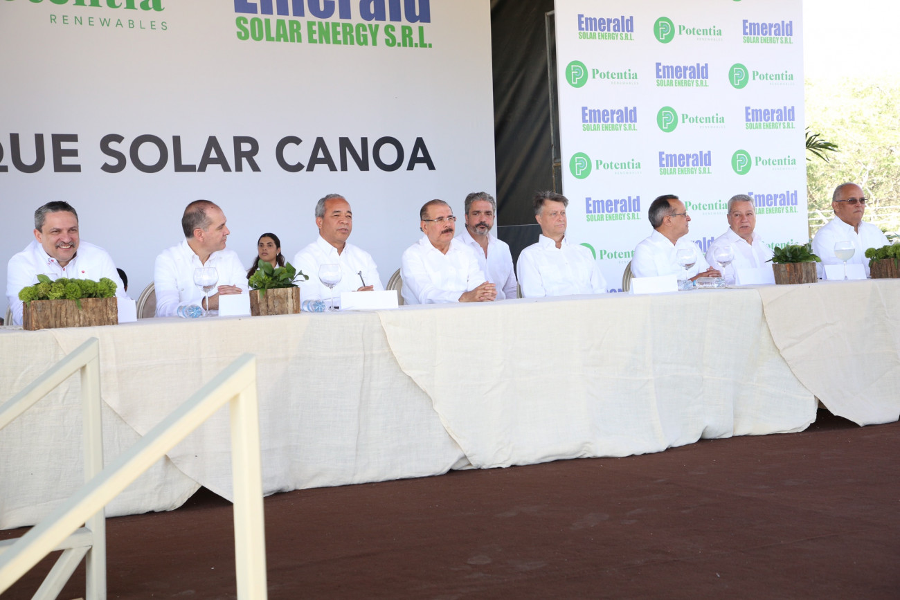 Acto inaugural encabezado por el presidente Danilo Medina con inversionistas y ejecutivos de Potentia Renewables, por el inicio de operaciones del parque Solar Canoa, en Vicente Noble, Barahona.