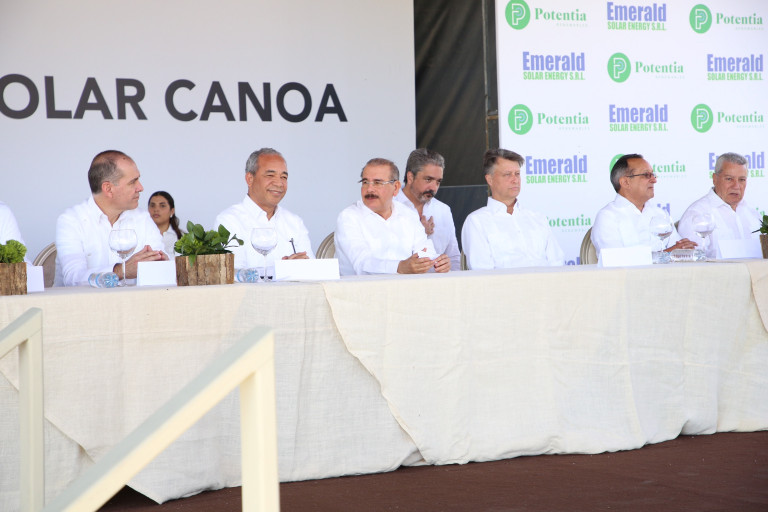 Acto inaugural encabezado por el presidente Danilo Medina con inversionistas y ejecutivos de Potentia Renewables, por el inicio de operaciones del parque Solar Canoa, en Vicente Noble, Barahona.