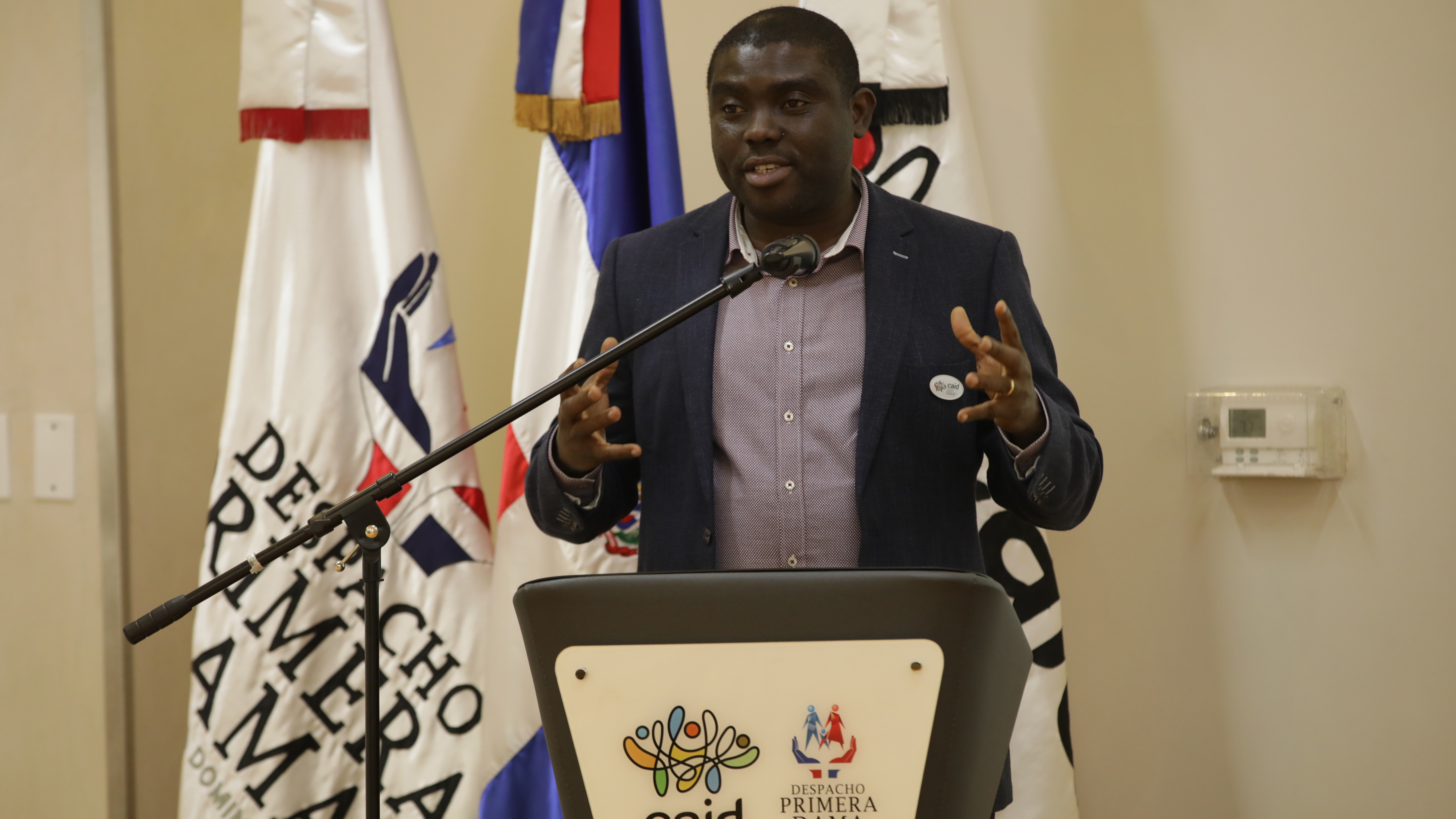 Participación de Solomon Oyelere, especialista y experto internacional en accesibilidad e inclusión digital, durante su visita al Centro de Atención Integral para la Discapacidad (CAID). Santo Domingo Oeste.