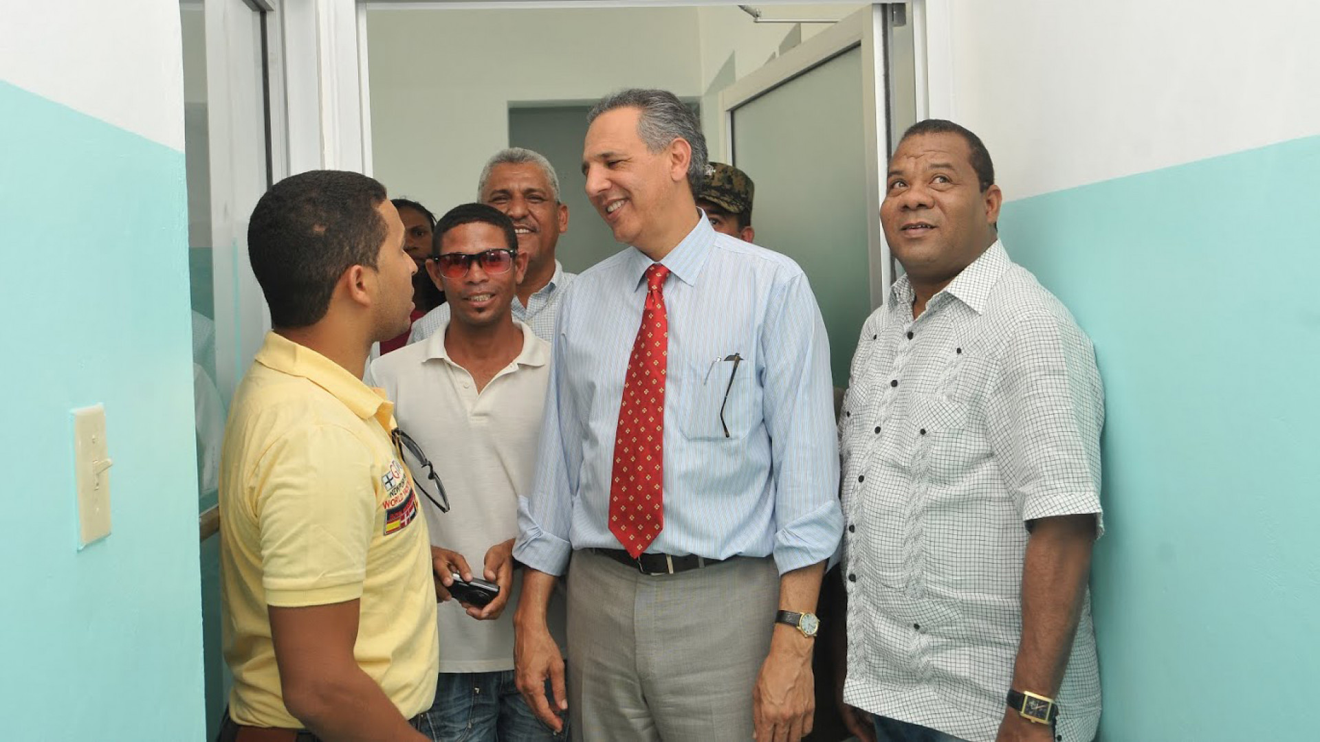 Recorrido de supervisión de la obra, encabezado por el ministro José Ramón Peralta acompañado de Alexis Lantigua, viceministro Administrativo; Patricia Palma, periodista española; el coronel Eric Reyes, director general de Ingeniería del Ministerio de Defensa; Vianey Medina, gobernador provincial y el diputado Pablo Remigio Santana, entre otros.