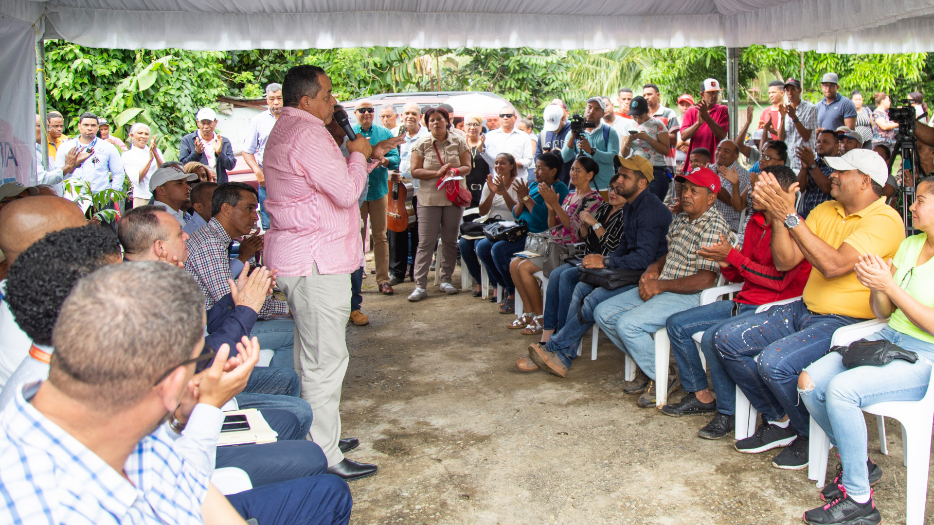 Reunión de seguimiento a la Visita Sorpresa 280, encabezada por Juan Pumarol, viceministro de Producción y Desarrollo Comunitario de la Presidencia, con productores y comunitarios de San Felipe Abajo, en Pimentel, provincia Duarte.