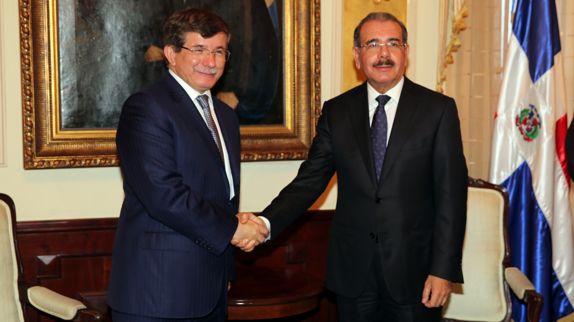 Presidente Danilo Medina y Ahmet Davutoglu, primer canciller de Turquía que visita la República Dominicana.