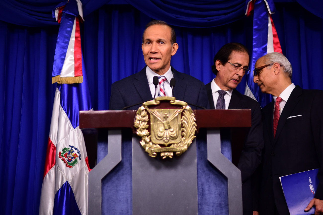 Rueda de prensa encabezada por el ministro de la Presidencia, Gustavo Montalvo, para ofrecer detalles del anuncio en rueda de prensa ofrecida en el Salón Orlando Martínez del Palacio Nacional.