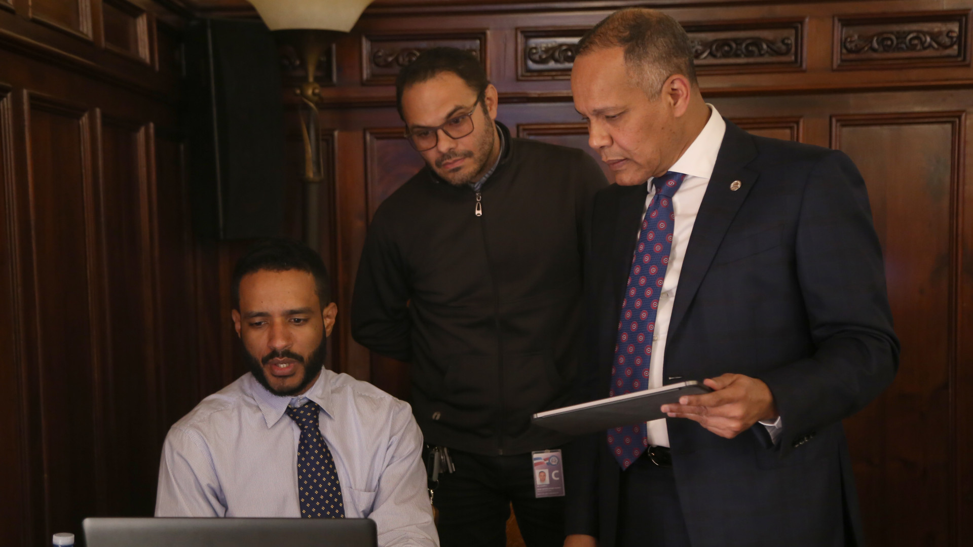 El presidente Danilo Medina encabezó esta tarde una reunión con los titulares de las instituciones del Estado, donde se dieron a conocer los resultados del Sistema de Monitoreo y Medición de la Gestión Pública del último trimestre del año 2019. Salón del Consejo de Gobierno del Palacio Nacional.