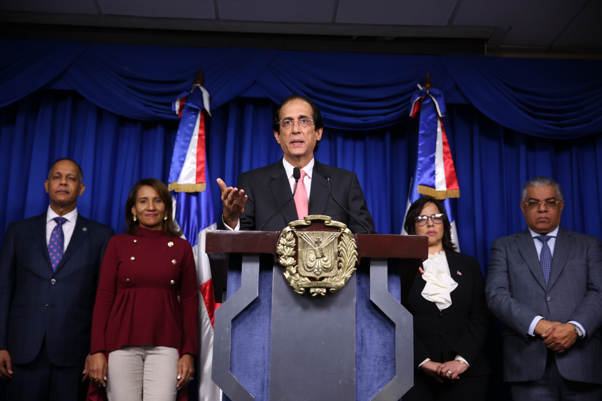 Rueda de prensa encabezada por el ministro de la Presidencia, Gustavo Montalvo, para informar los avances registrados hasta el momento, en el cumplimiento de Metas Presidenciales del último trimestre de 2019. Salón Orlando Martínez.