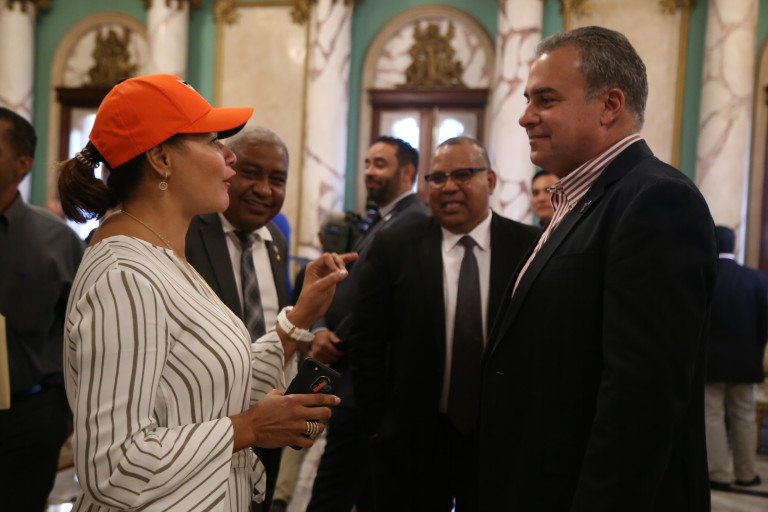 El presidente Danilo Medina entregó la Bandera Nacional a los integrantes y directivos del equipo de béisbol Los Toros del Este, campeones del torneo otoño-invernal 2019-2020, que representará a República Dominicana en la Serie del Caribe.