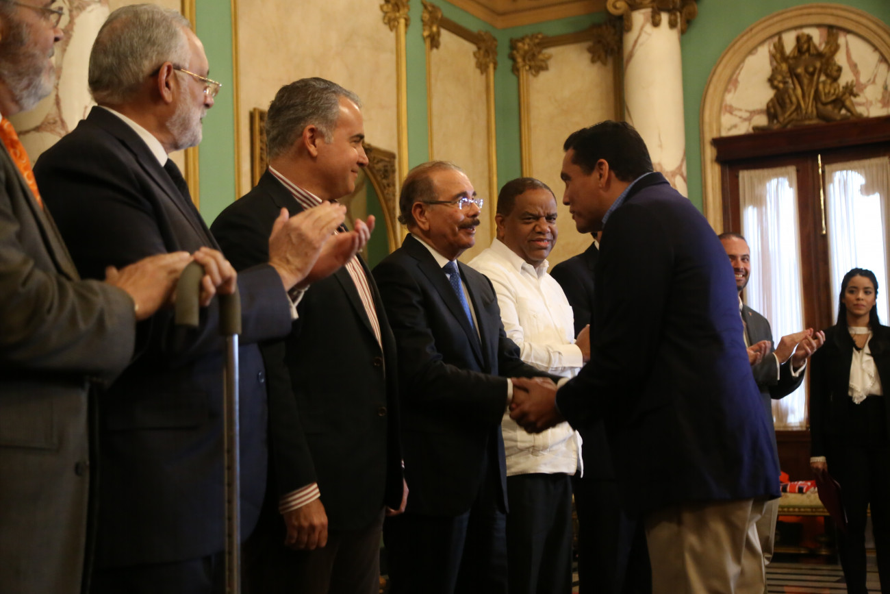 El presidente Danilo Medina entregó la Bandera Nacional a los integrantes y directivos del equipo de béisbol Los Toros del Este, campeones del torneo otoño-invernal 2019-2020, que representará a República Dominicana en la Serie del Caribe.