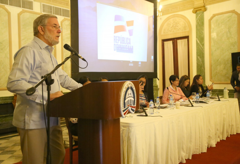 Conversatorio encabezado por el director de la DICOM y portavoz del Gobierno, Roberto Rodríguez Marchena, con microempresarios de la comunicación de varias provincias. Salón Verde de Palacio Nacional.