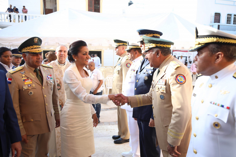 La primera dama Cándida Montilla de Medina asistió este martes a actos solemnes de dedicación de la iglesia Santa Bárbara, constituida como Catedral y sede de la Diócesis Castrense de la República Dominicana.
