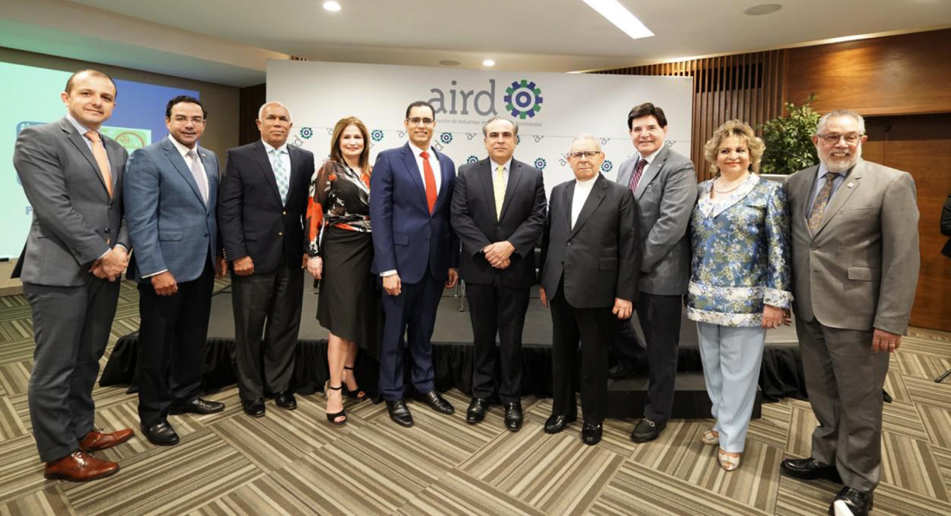Ministro de Economía, Planificación y Desarrollo, Juan Ariel Jiménez con directivos de la Asociación de Industrias de la República Dominicana (AIRD), y otras personalidades presentes en el evento.