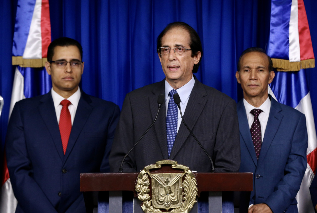 Rueda de prensa encabezada por el ministro de la Presidencia, Gustavo Montalvo, para anunciar la promulgación a reforma de Ley 13-20, de Seguridad Social. Salón Orlando Martínez del Palacio Nacional.
