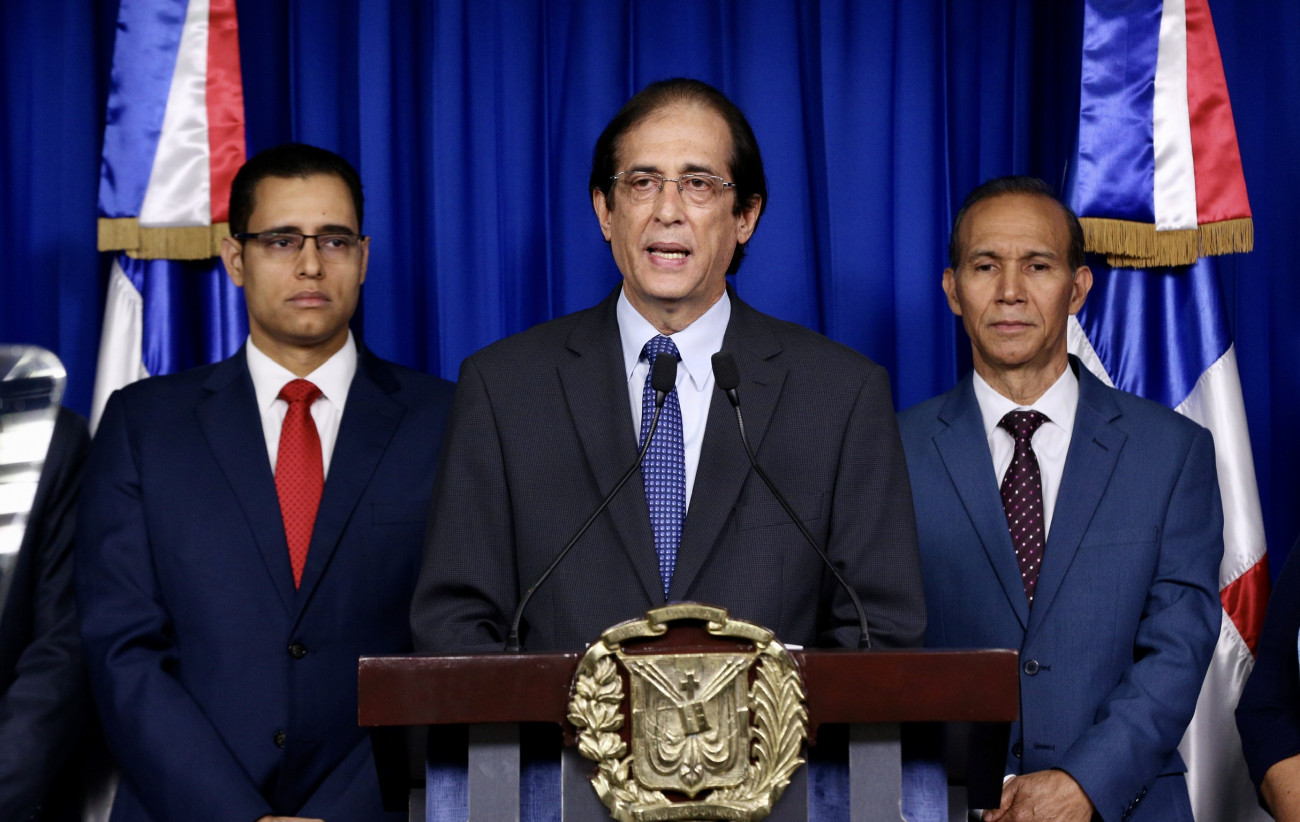 Rueda de prensa encabezada por el ministro de la Presidencia, Gustavo Montalvo, para anunciar la promulgación a reforma de Ley 13-20, de Seguridad Social. Salón Orlando Martínez del Palacio Nacional.