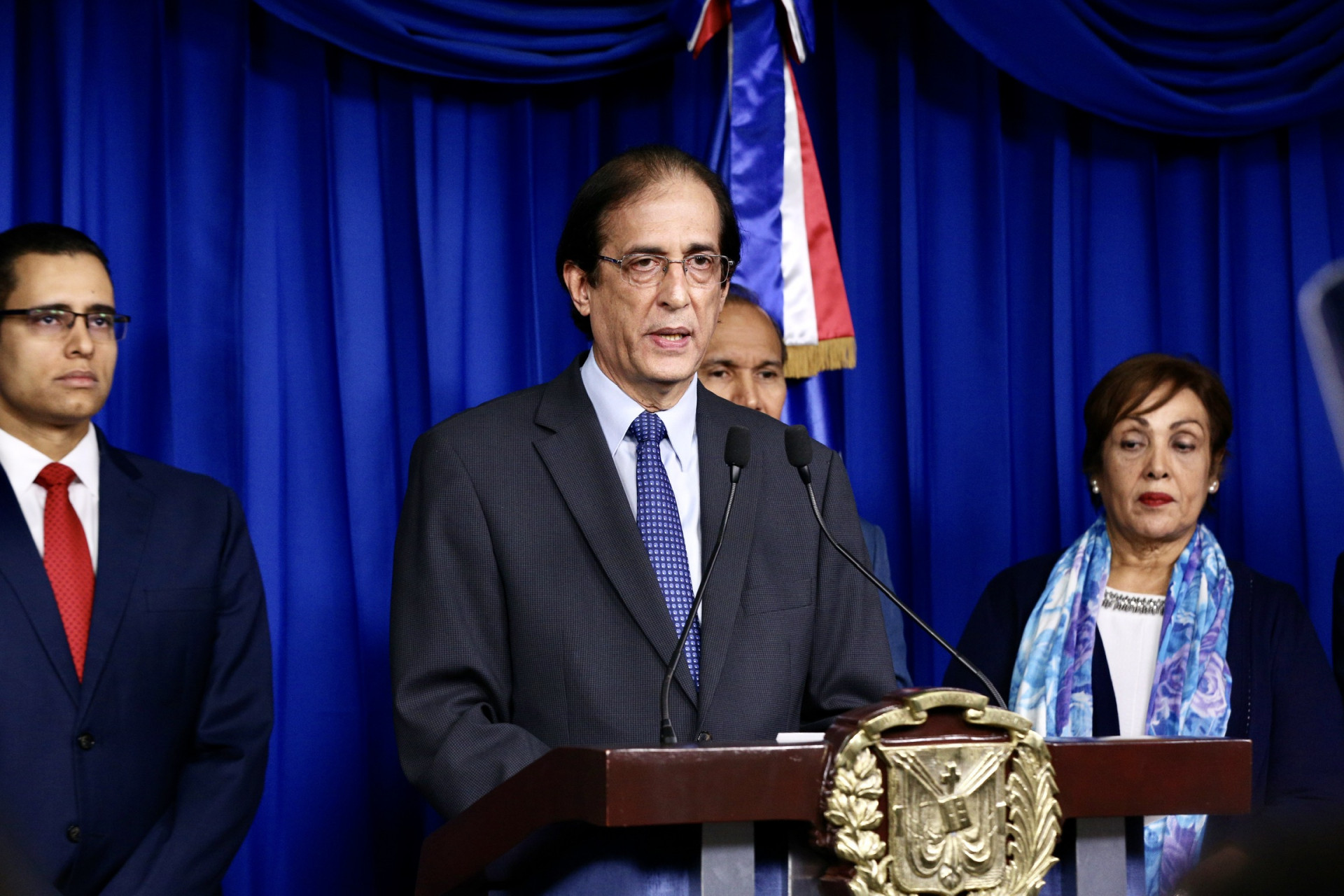 Rueda de prensa encabezada por el ministro de la Presidencia, Gustavo Montalvo, para anunciar la promulgación a reforma de Ley 13-20, de Seguridad Social. Salón Orlando Martínez del Palacio Nacional.