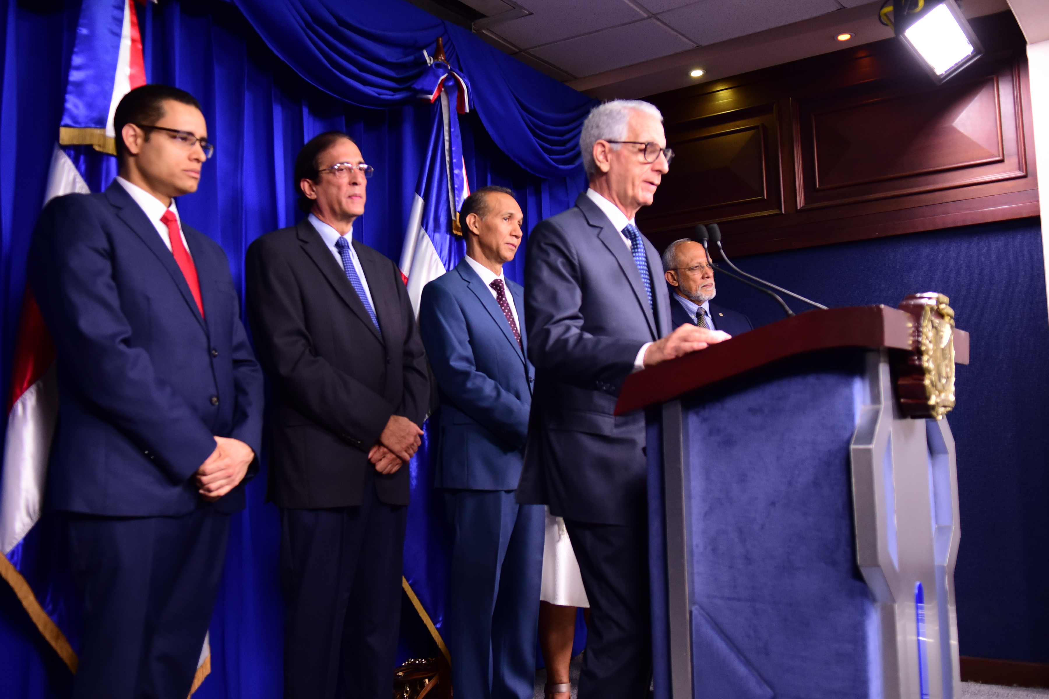 Rueda de prensa encabezada por el ministro de la Presidencia, Gustavo Montalvo, para anunciar la promulgación a reforma de Ley 13-20, de Seguridad Social. Salón Orlando Martínez del Palacio Nacional.