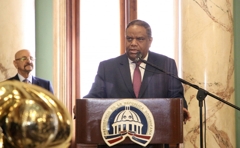 Ministro de Deportes, Danilo Díaz, durante su discurso en el encuentro celebrado en el Salón de Embajadores del Palacio Nacional.