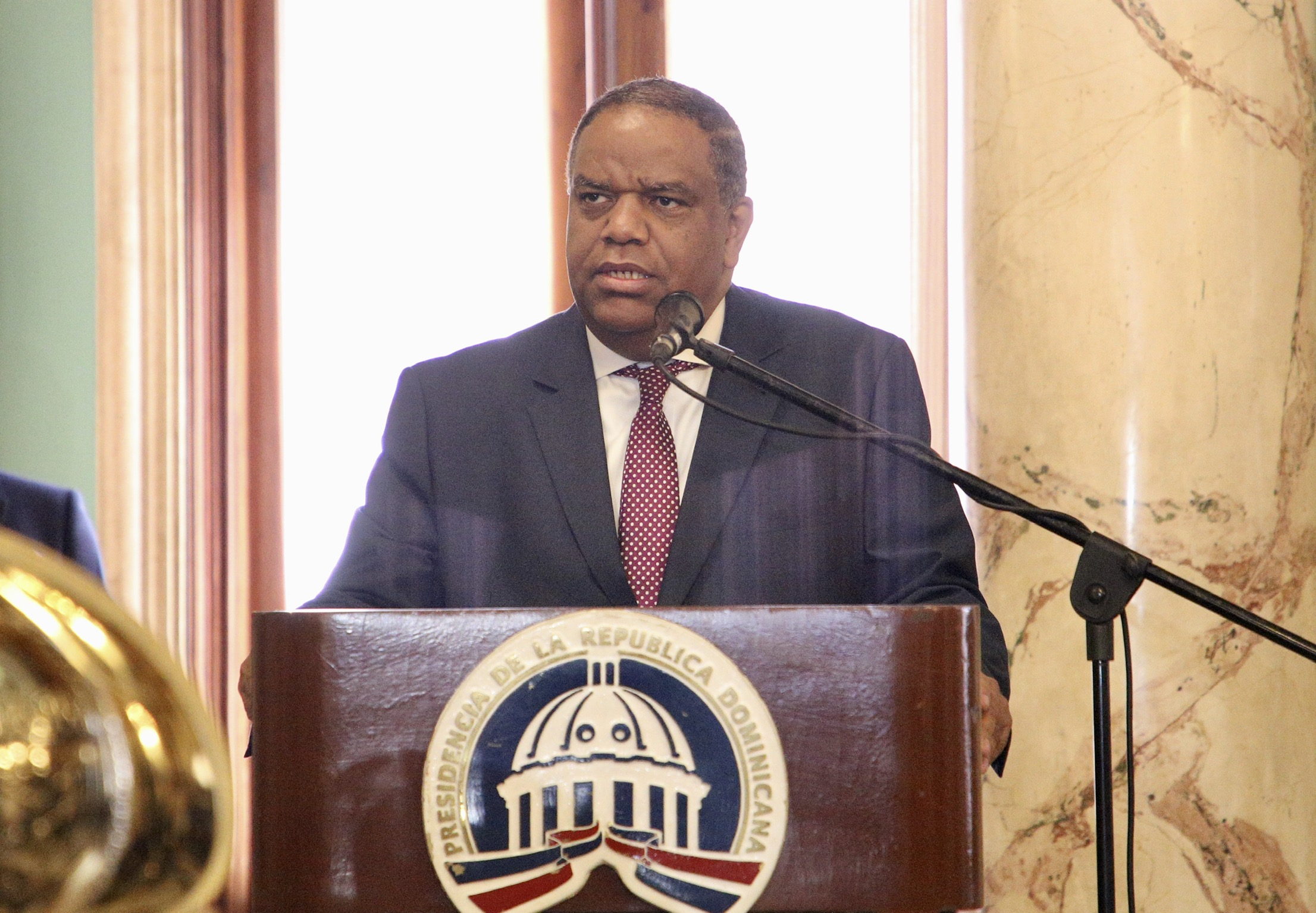 Ministro de Deportes, Danilo Díaz, durante su discurso en el encuentro celebrado en el Salón de Embajadores del Palacio Nacional.