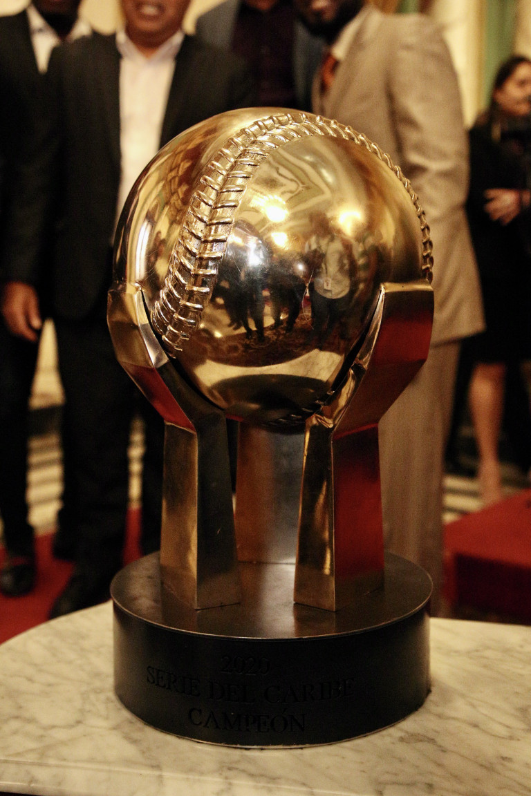 Trofeo de la Serie del Caribe 2020 obtenido por el equipo de béisbol dominicano Los Toros del Este, en el Estadio Hiram Bithorn en San Juan, Puerto Rico.