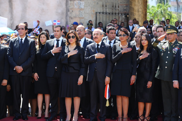 Presidente Danilo Medina, en compañía de la primera dama, Cándida Montilla de Medina; la vicepresidenta, Margarita Cedeño; miembros del gabinete y otras autoridades civiles y militares presentes, al rendir tributo a los Padres de la Patria con ocasión del 176 aniversario de la Independencia Nacional.
