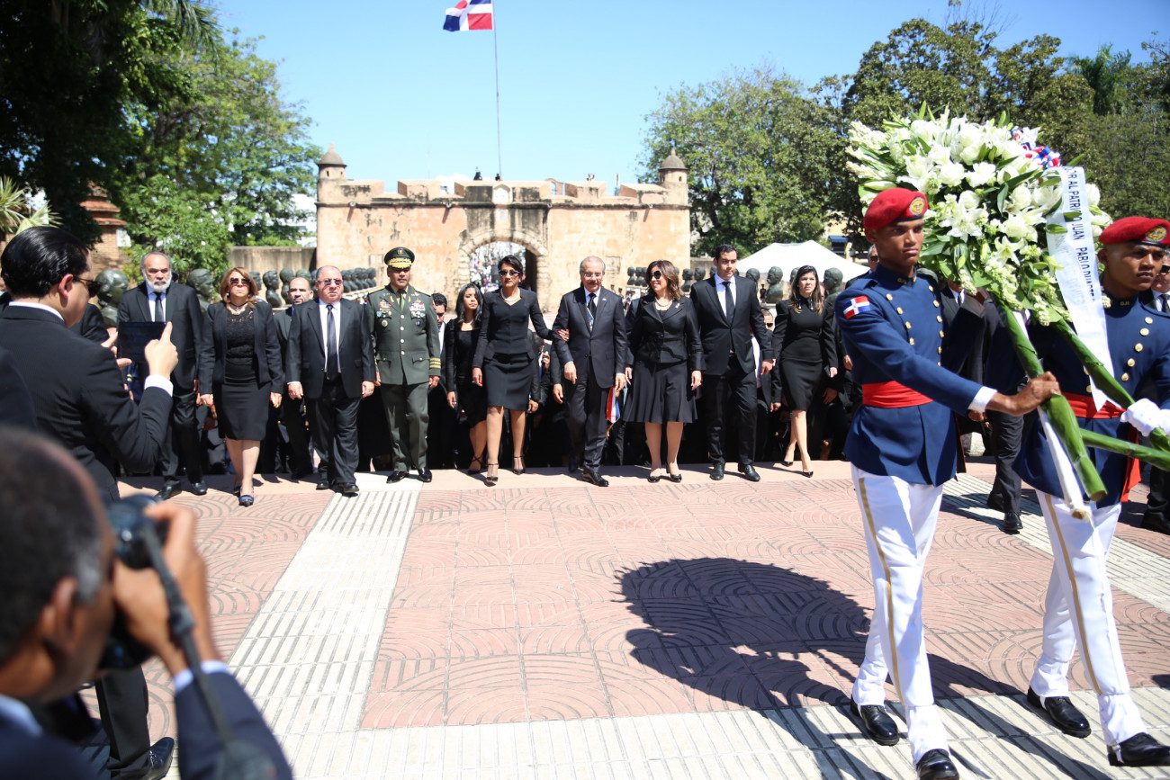 Presidente Danilo Medina, en compañía de la primera dama, Cándida Montilla de Medina; la vicepresidenta, Margarita Cedeño; miembros del gabinete y otras autoridades civiles y militares presentes, al rendir tributo a los Padres de la Patria con ocasión del 176 aniversario de la Independencia Nacional.
