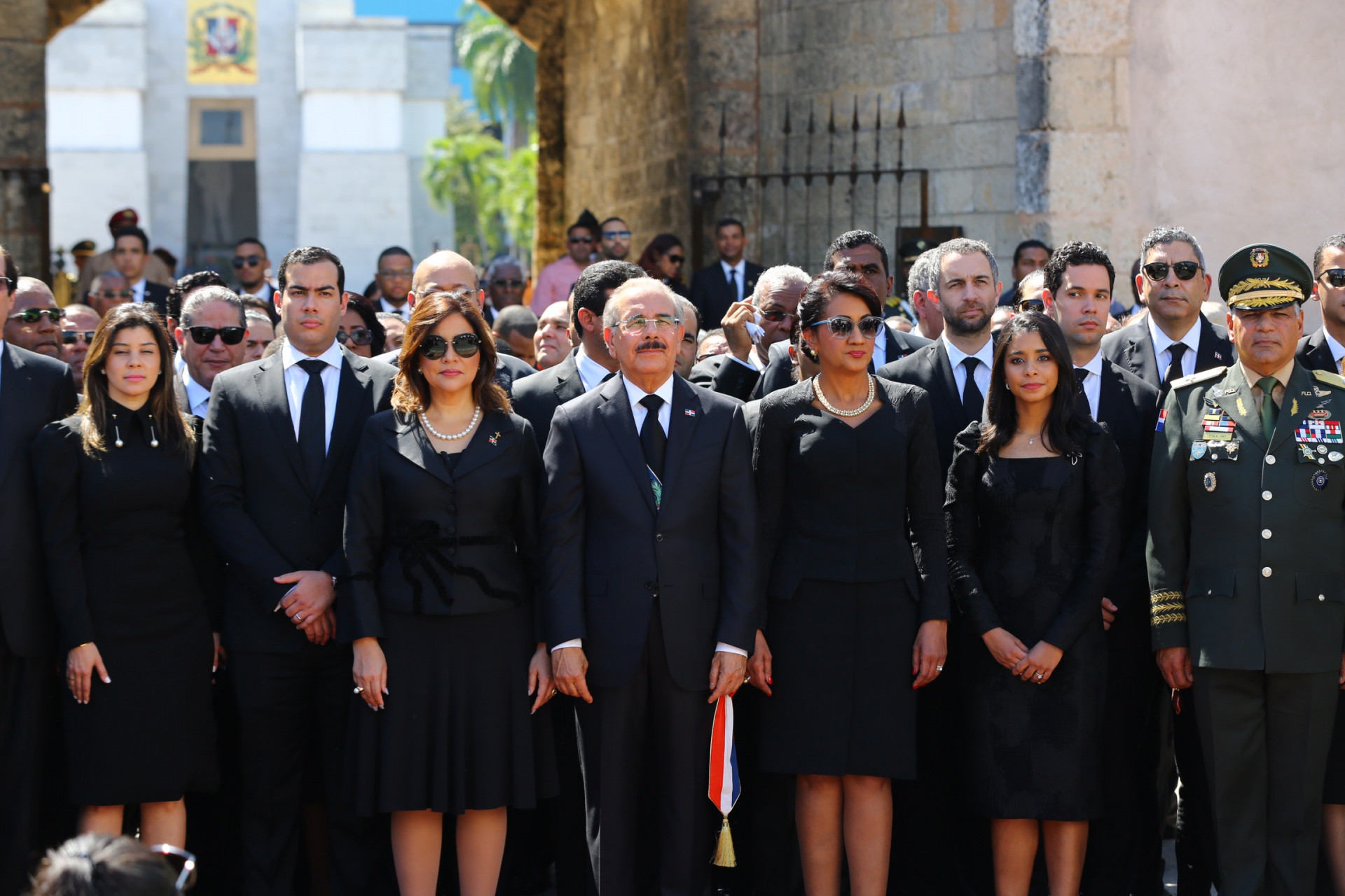 Presidente Danilo Medina, en compañía de la primera dama, Cándida Montilla de Medina; la vicepresidenta, Margarita Cedeño; miembros del gabinete y otras autoridades civiles y militares presentes, al rendir tributo a los Padres de la Patria con ocasión del 176 aniversario de la Independencia Nacional.