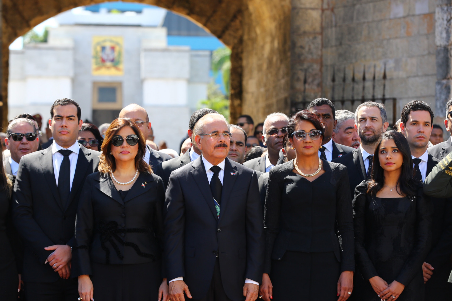 Presidente Danilo Medina, en compañía de la primera dama, Cándida Montilla de Medina; la vicepresidenta, Margarita Cedeño; miembros del gabinete y otras autoridades civiles y militares presentes, al rendir tributo a los Padres de la Patria con ocasión del 176 aniversario de la Independencia Nacional.