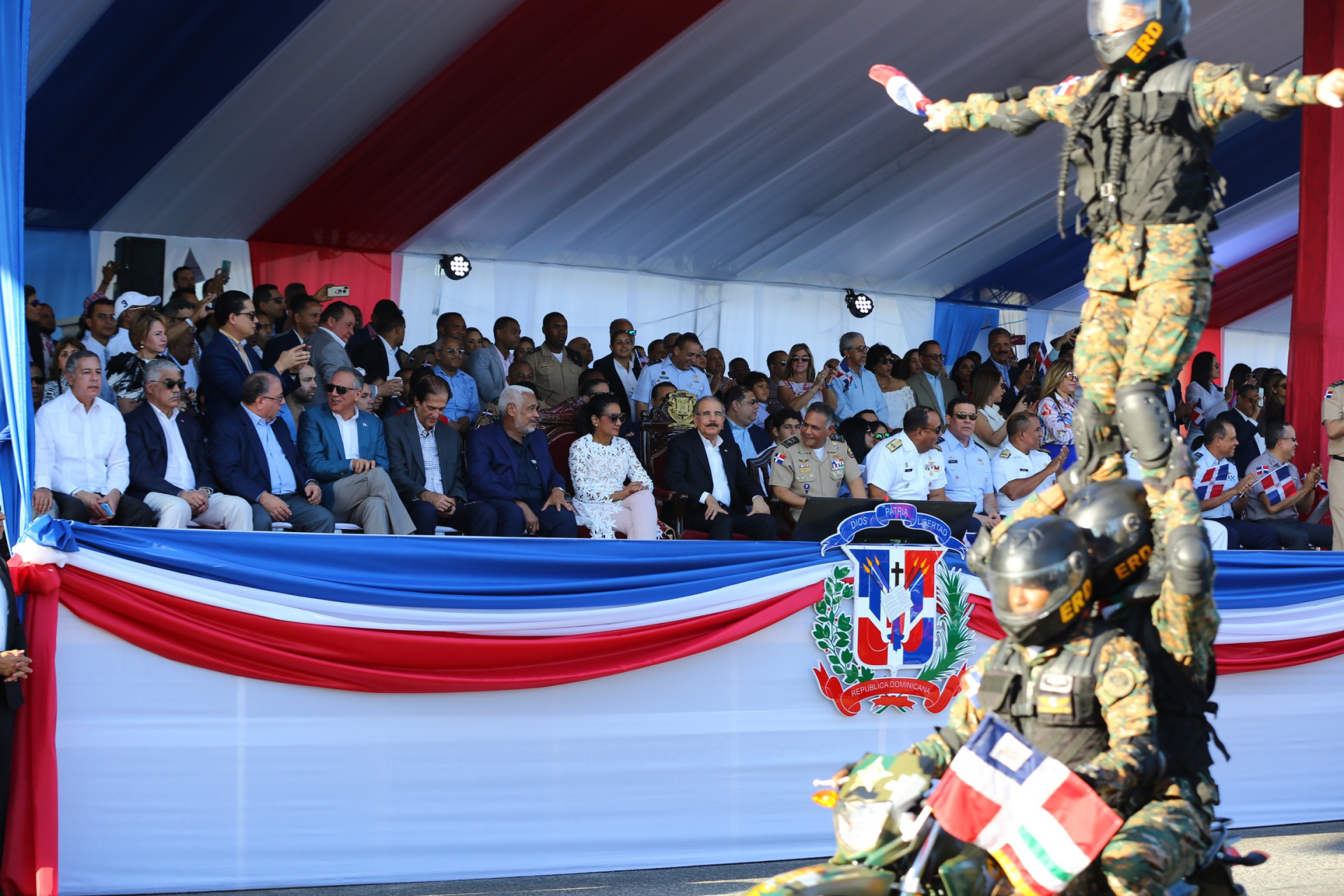 Desfile militar encabezado por el presidente Danilo Medina con motivo de la celebración del 176 aniversario de la Independencia Nacional, en el Malecón de Santo Domingo.
