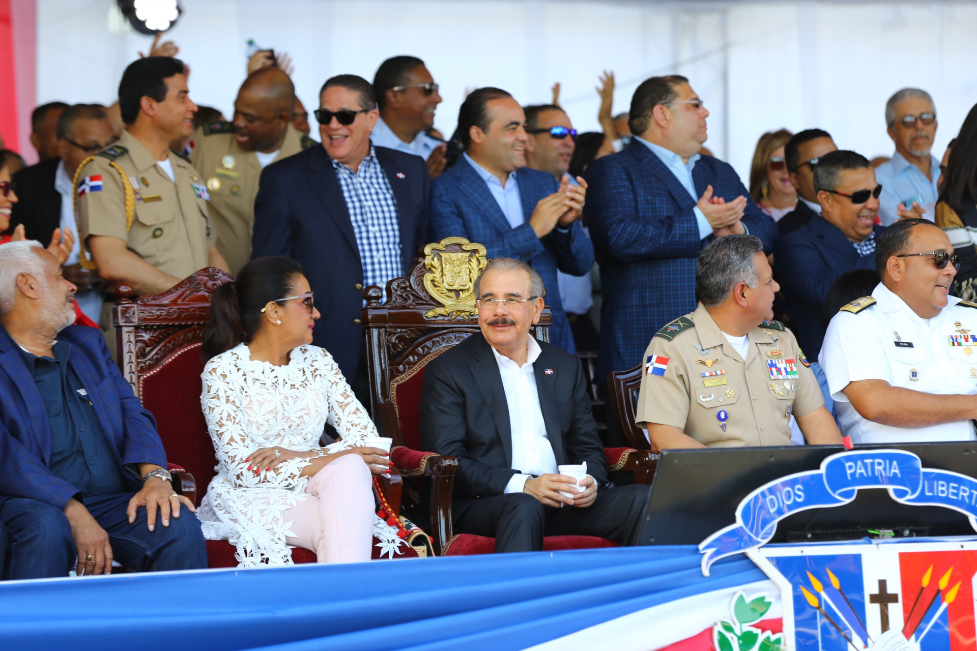 Además de la primera dama, el jefe de Estado estuvo acompañado de los ministros de la Presidencia, Gustavo Montalvo; Administrativo de la Presidencia, José Ramón Peralta; de Defensa, teniente general Rubén Darío Paulino Sem; de Interior y Policía, José Ramón Fadul; de Educación; Antonio Peña Mirabal; y de Relaciones Exteriores, Miguel Vargas, entre otras personalidades.
