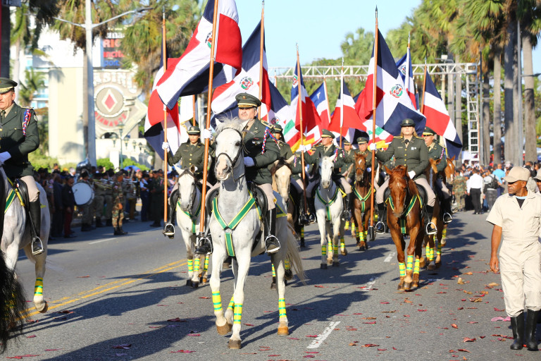 Desfile militar encabezado por el presidente Danilo Medina con motivo de la celebración del 176 aniversario de la Independencia Nacional, en el Malecón de Santo Domingo.