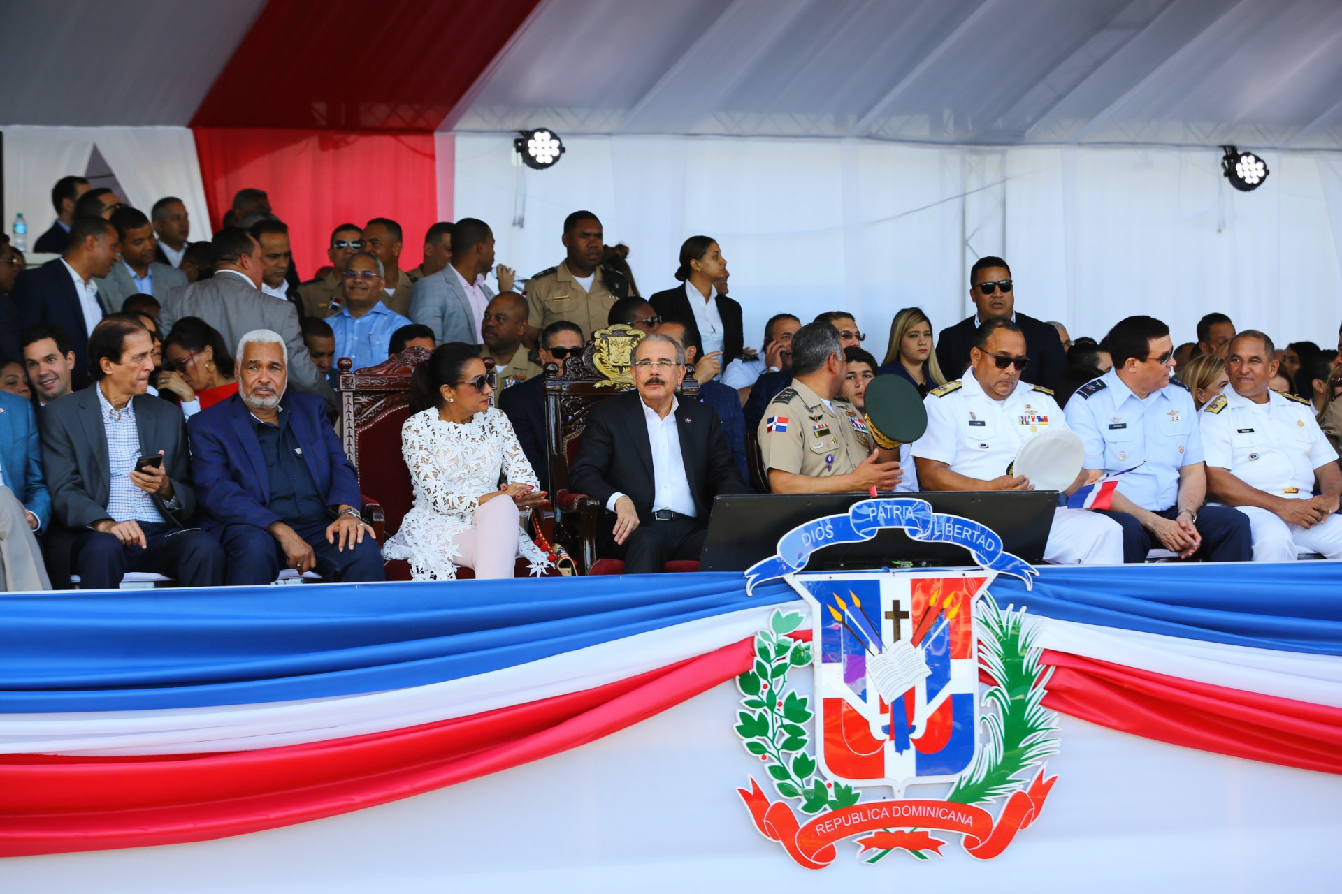 Además de la primera dama, el jefe de Estado estuvo acompañado de los ministros de la Presidencia, Gustavo Montalvo; Administrativo de la Presidencia, José Ramón Peralta; de Defensa, teniente general Rubén Darío Paulino Sem; de Interior y Policía, José Ramón Fadul; de Educación; Antonio Peña Mirabal; y de Relaciones Exteriores, Miguel Vargas, entre otras personalidades.