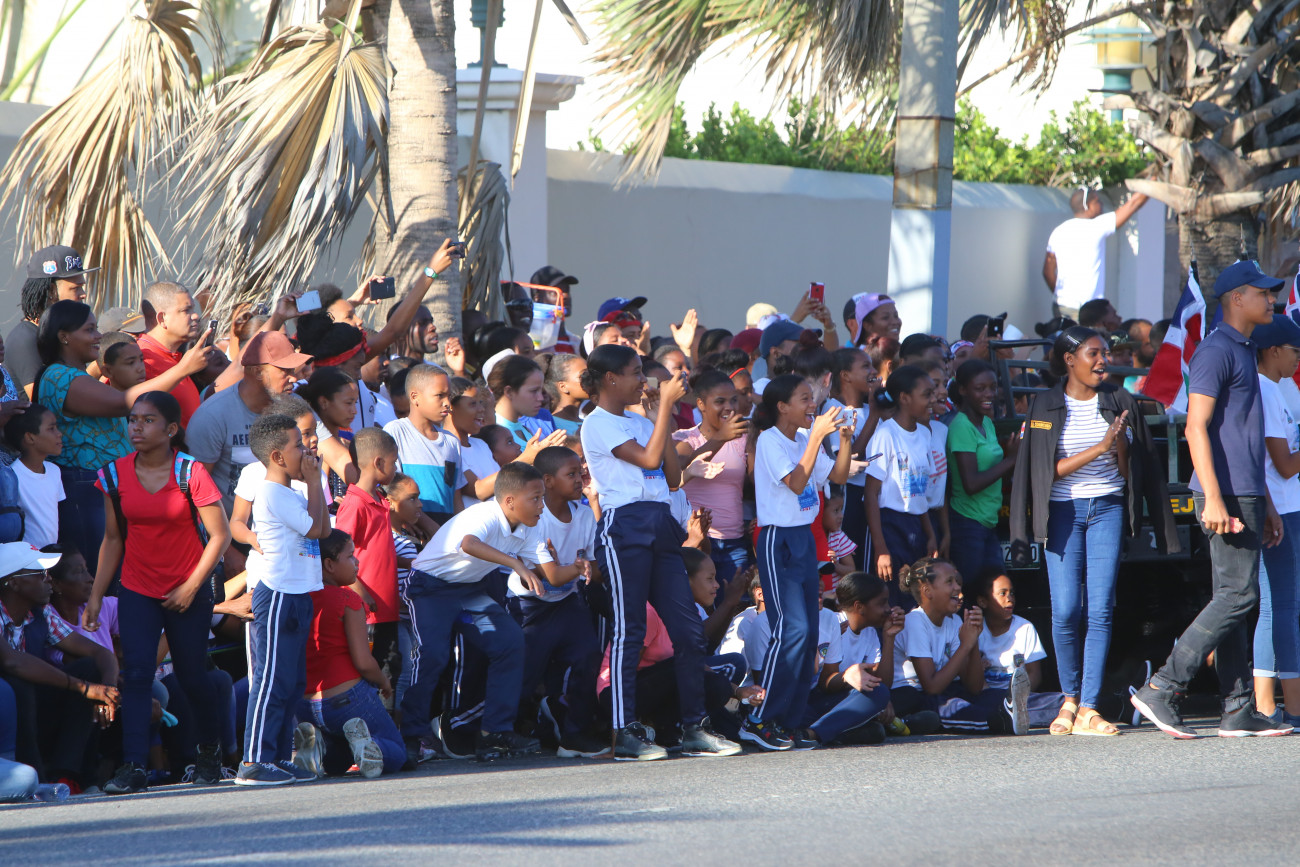 En un concurrido acto, el presidente Danilo Medina encabezó hoy el desfile militar con motivo de la celebración del 176 aniversario de la Independencia Nacional, en la avenida George Washington.