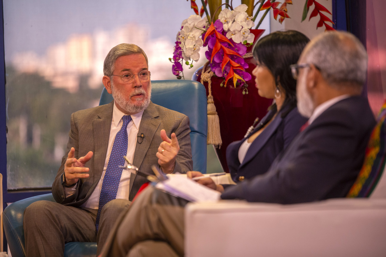 El portavoz del Gobierno y director general de Comunicación, Roberto Rodríguez Marchena, al ser entrevistado por los periodistas Persio Maldonado, Alberto Caminero y Lorenny Solano, en el programa Matinal 5, trasmitido por Telemicro, Canal 5.
